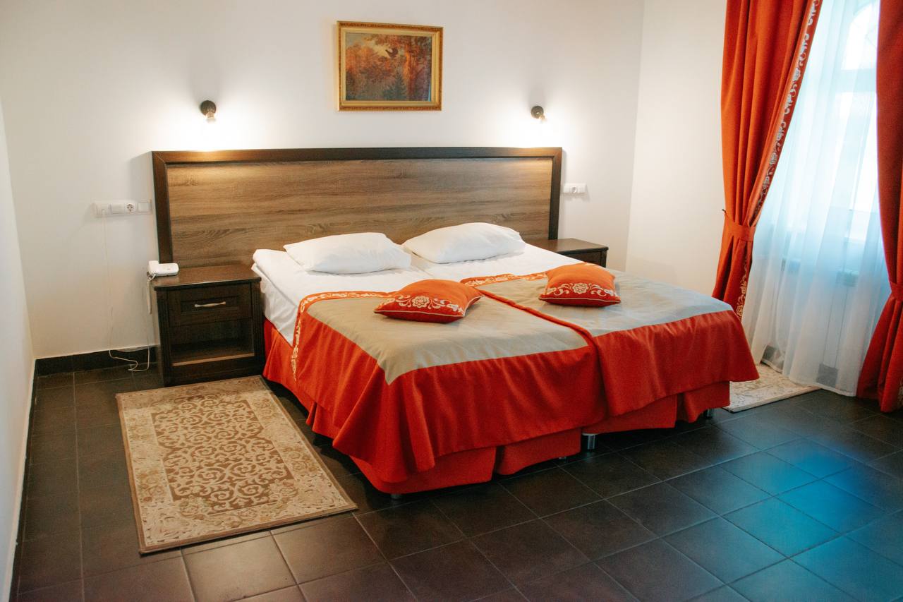 Гости размещаются в уютном современном отеле с собственной закрытой территорией, возможны варианты размещения в 1-, 2- и 3-местных номерах. Питание включает завтрак по системе «шведский стол», а также обед и ужин в ресторане отеля.